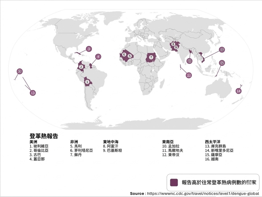 全球多國登革熱疫情升溫拉警報 高市衛生局警示前往旅遊、探親、經商的民眾應落實防蚊措施