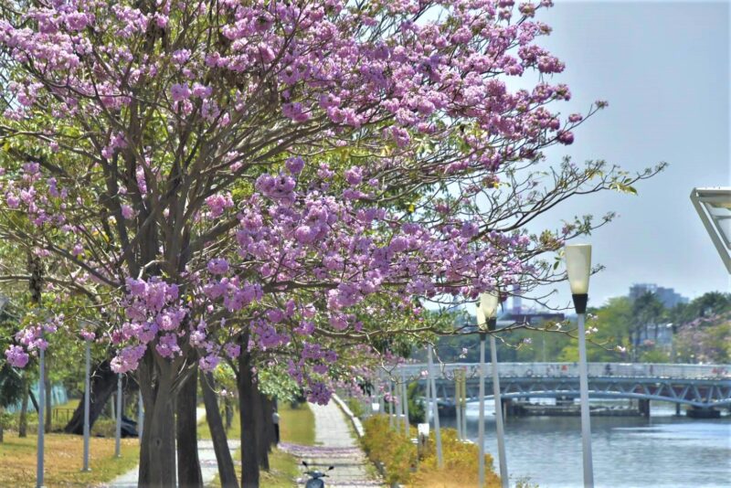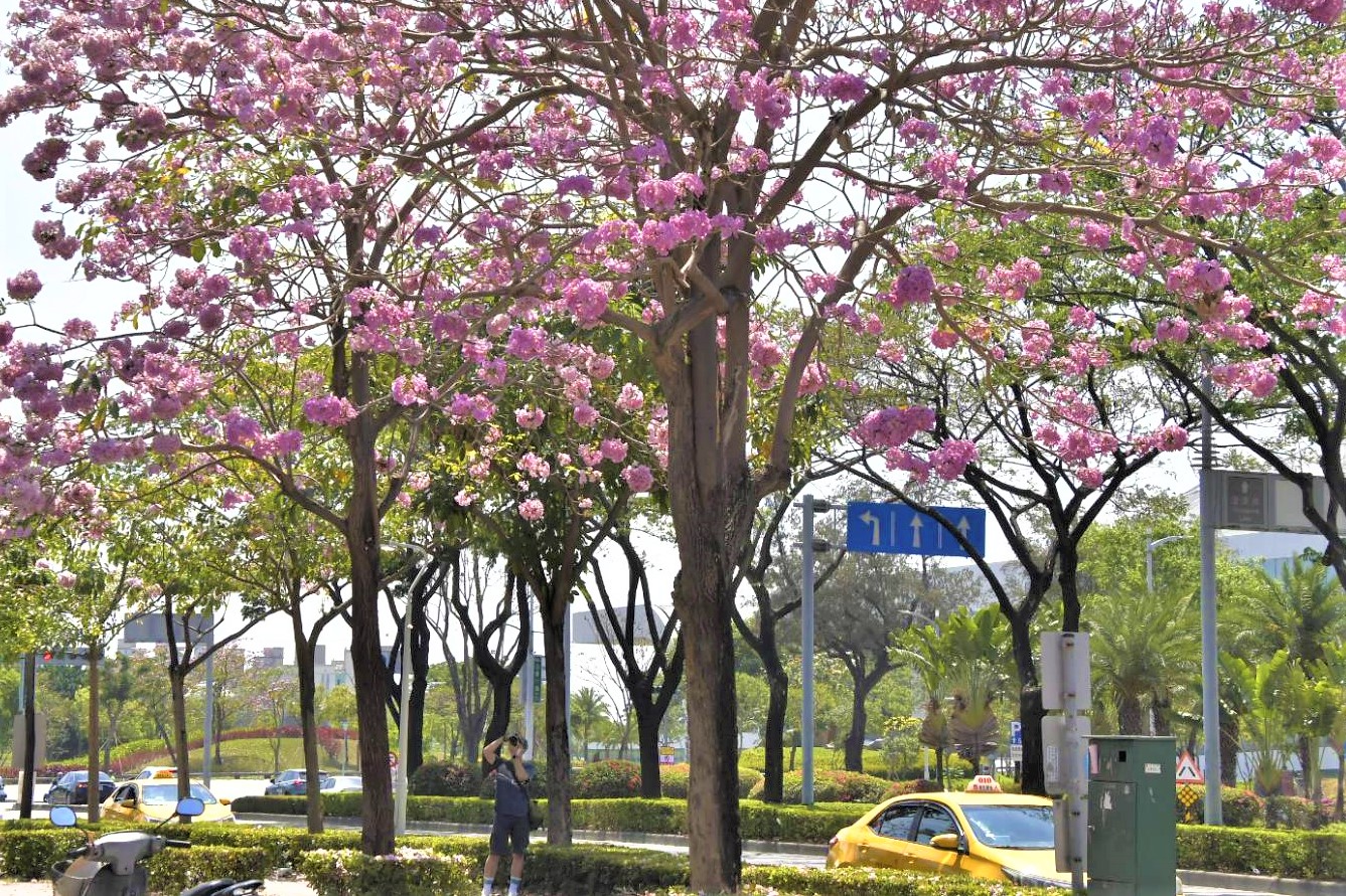 公園處表示,基於適地適種原則,行道樹選用時應考量適應南台灣氣候的各式樹種進行城市綠美化,原生熱帶美洲之紅花、洋紅風鈴木,於高雄風土適應力佳,花色有的粉嫩、有的緋紅,深深淺淺的色彩變化,活潑又生動。歡迎民眾把握花期,與在高雄街頭、公園、湖畔綠地邊來場不期而遇的粉色邂逅。