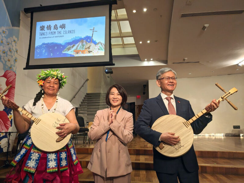 【今傳媒/記者李祖東報導】恆春民謠藝師團4月30日參加由駐紐約臺北經濟文化辦事處舉辦的亞太裔傳統月活動,演出民謠音樂劇「半島風聲 相放伴」,並與吐瓦魯駐聯合國進行文化交流。屏東縣長周春米致贈月琴給駐紐約臺北經濟文化辦事處李光章大使、吐瓦魯駐聯合國代表Tinai Temamila Kepa,表達對這次活動的祝福與感謝。