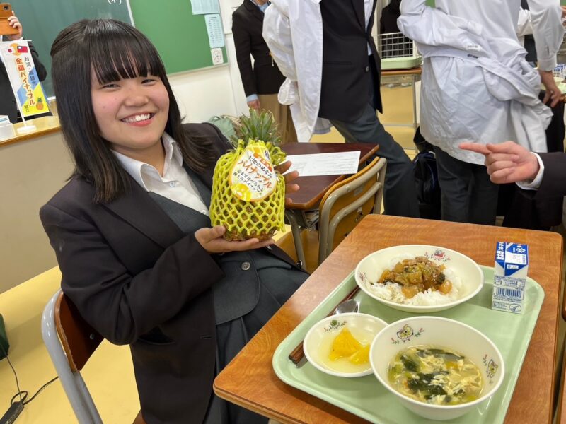 【今傳媒/記者李祖東報導】高雄鳳梨搖身一變成為外交大使,連續2年登上日本學生營養午餐水果,東京八王子市共38所國中,5月9日至5月10日約14,500名師生一同品嚐來自台灣友好城市高雄的當季鳳梨,台日好交情更加深厚。