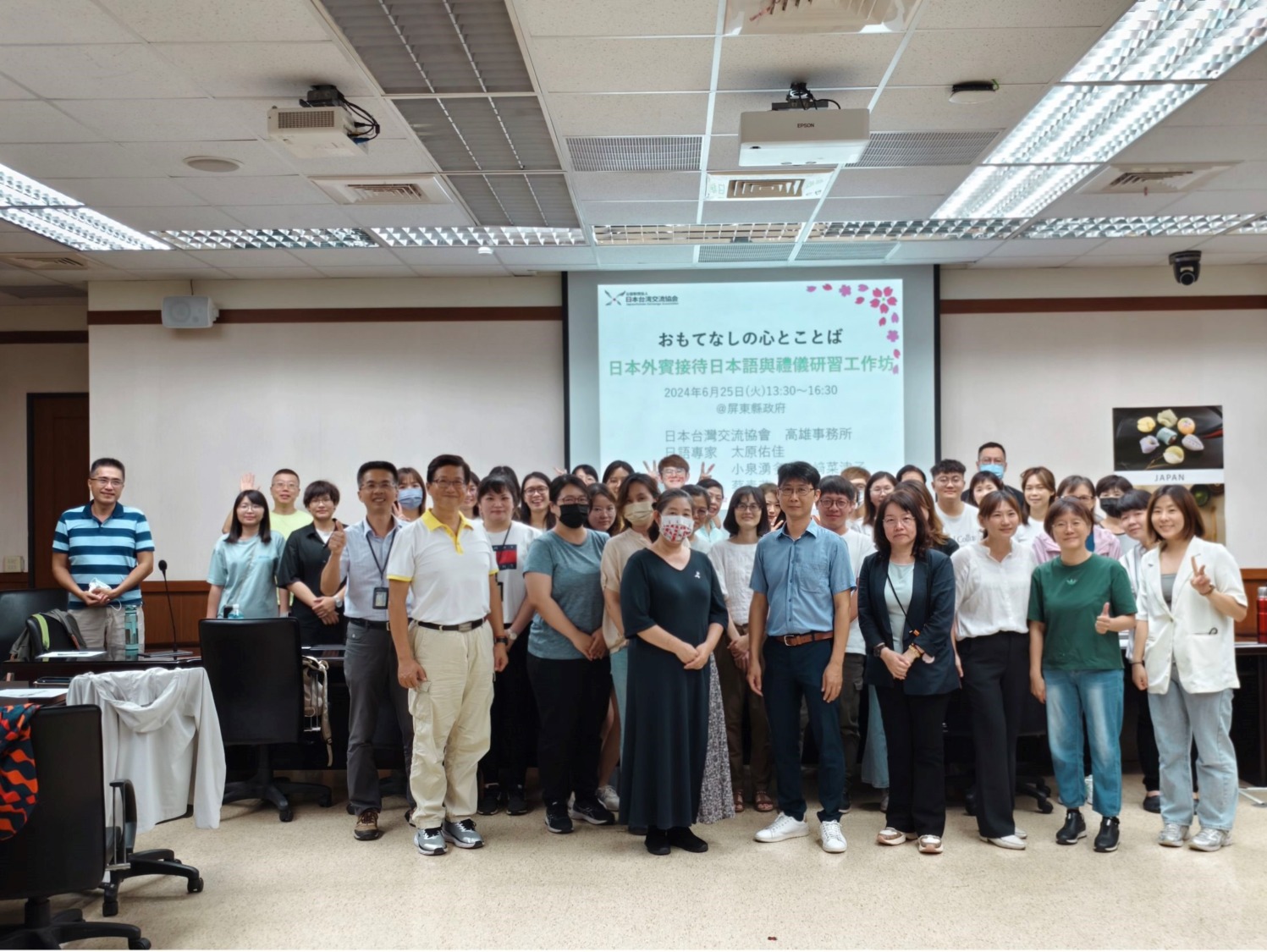 【今傳媒/記者李祖東報導】屏東縣與日本鹿兒島縣年初簽署友好交流協定備忘錄後,雙方實質交流越來越密切,屏東縣政府為提升接待禮儀與量能,首次與日本台灣交流協會高雄事務所合作,於25日開辦日語研習工作坊,吸引將近50位學員報名,課程除有常用接待禮儀外,更將日本茶道文化融入課程,特別的體驗也讓學員們獲益良多。