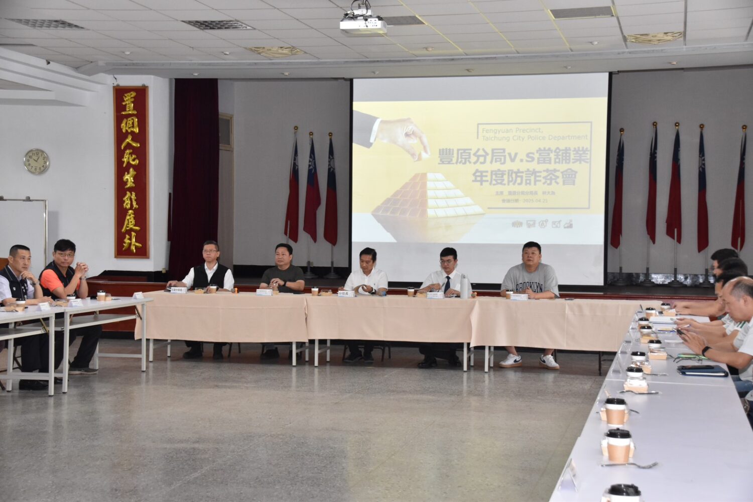 豐原警見詐騙集團惡行,敬邀臺中地方檢察署戴檢察官旻諺,另邀請臺中市直轄市當舖同業公會理事長、各里監代表及中市轄內各家當舖業者至豐原分局召開「年度防詐茶會」,期共同攜手防範詐騙、降低被害。