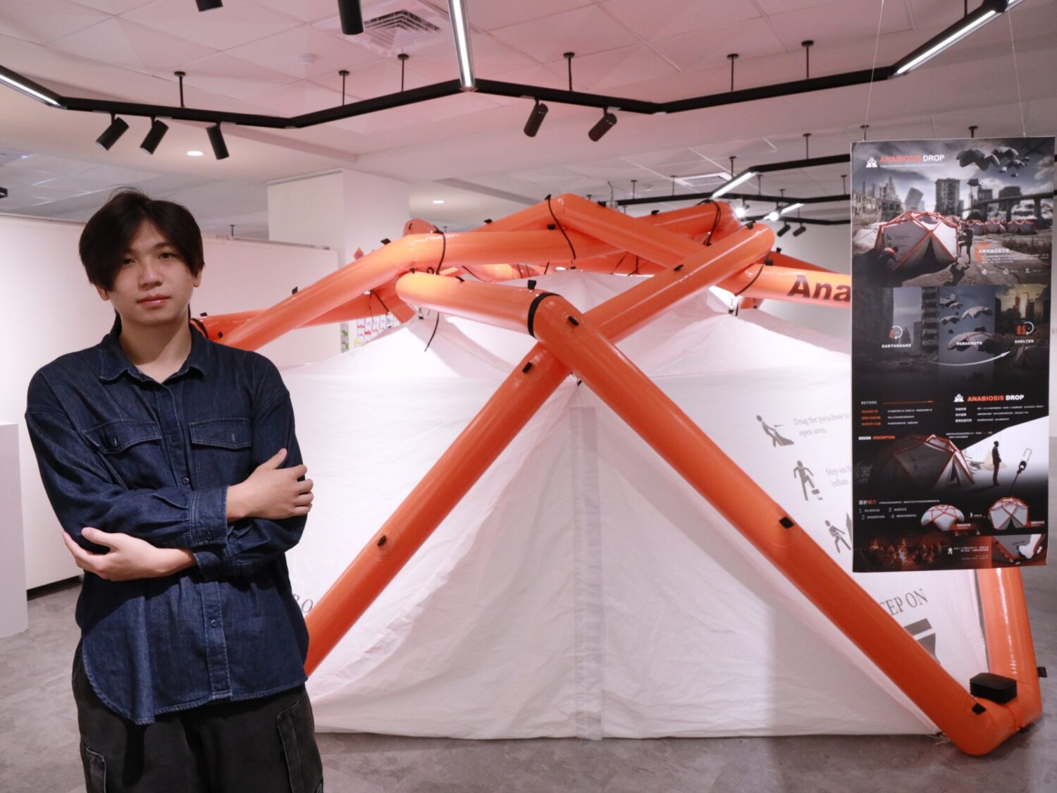 另一件作品「ANABIOSIS DROP災民快速收容方案」,是由林翊文同學單人完成創作,專為地震、土石流等大規模災害所設計,從空而降的降落傘,能快速轉變成災民的救護所。另外,在大型事故救災應用上,黃柏翰、邱愉淨、危珈妤等人創作「ResQ大量傷患救援檢傷分級系統」採用紅外線檢測技術,協助救援人員快速辨識分級傷者,並共享病患資訊,提升救援效率,這兩件作品同時入圍金點新秀設計獎等三項獎項。
