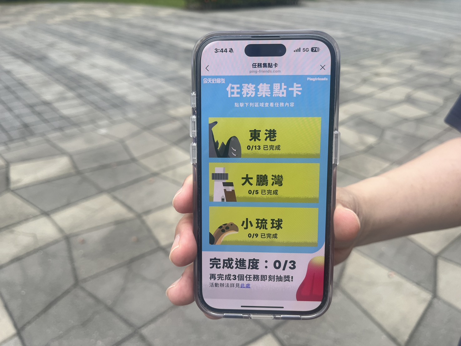 期間,只要前往東港、小琉球地區完成任一路線中的三項任務即可獲得1次抽獎資格,活動時間自即日起至7/6止,實體獎品兌換期限至7/31,線上兌獎則請民眾於7/10前回傳獎品寄送資訊,以利後續獎品寄送事宜,更多詳情請參考活動辦法:https://lin.ee/1KFtASc/newf。