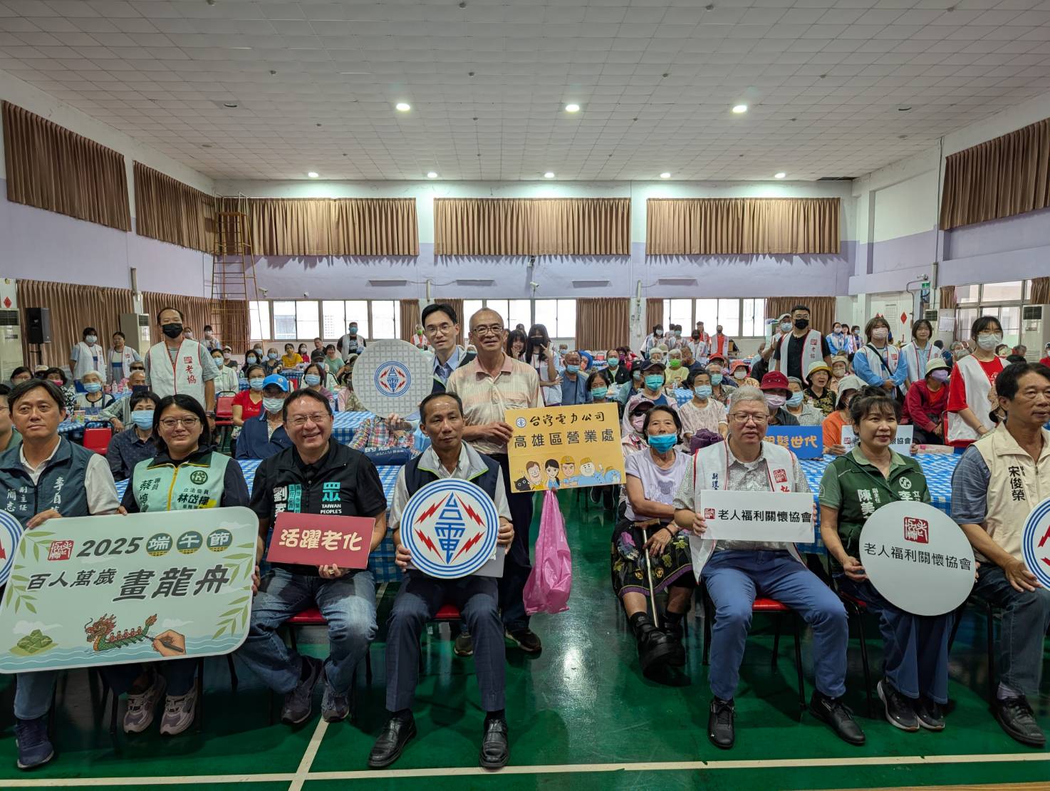 年輕人划龍舟!長輩們畫龍舟!趕在端午連假前夕,台電高雄區處處長黃志榮28日上午率隊前往老人福利關懷協會捐款送暖!活動現場共邀集250位長輩走出家中來到位於左營的活動中心一起畫畫,其中更有一位高齡91歲的陳姓阿嬤,小時候忙著做生意養家,不識字也不會拿筆,直到近三年接觸老協,在志工陪同下,開始拿筆練字、學畫畫。今天的畫龍舟活動,彷彿是他的學習驗收日!現場同時也有區處的節能服務課同仁向在場的長輩們進行居家用電安全宣導。