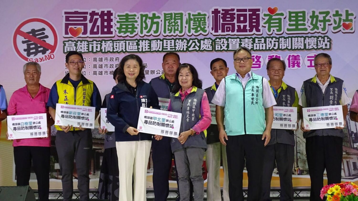 陳盈秀局長也特別感謝橋頭區公所協助及17位里長熱心公益「好里相挺」,讓高雄市里辦毒防關懷站可以持續深耕擴點,共同推動本市毒品防制工作。