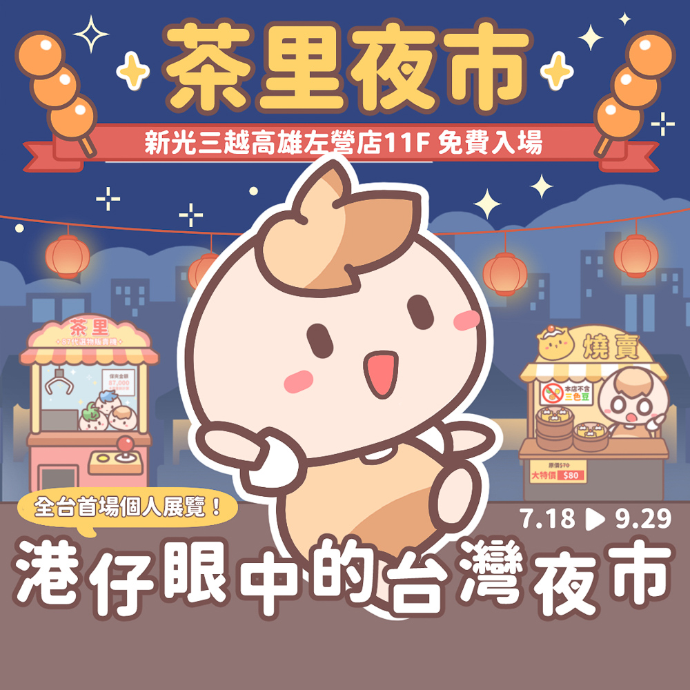 〔今傳媒/記者張忠義報導〕來自香港、移居台灣7年的人氣插畫家「茶里」,將自己筆下最具共鳴與幽默感的台灣日常,實體化為全新主題展《茶里夜市—港仔眼中的台灣夜市》,於即日起至9月29日,於新光三越高雄左營店11F展出!本次特展以「夜市」為主題,打造實體沉浸式漫畫場景,結合視覺打卡、趣味互動與角色裝置,讓觀展者在輕鬆玩樂中感受共鳴、拍下回憶,必有三大展區亮點。