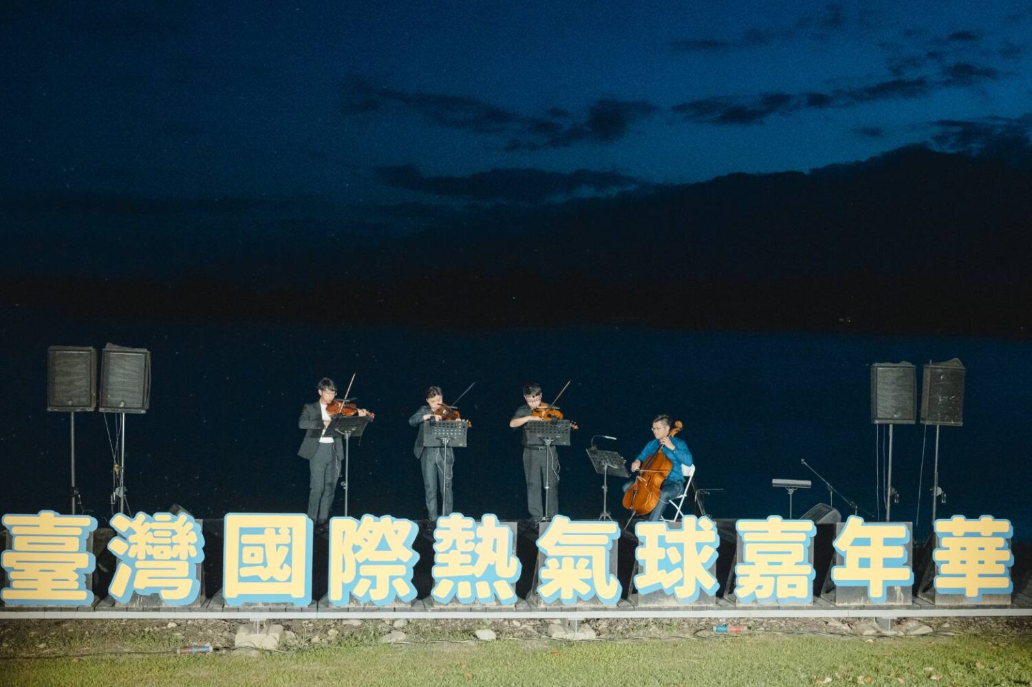 活動由「弦音雅集重奏團」以溫潤悠揚的弦樂揭開序幕,隨後由「陳氏姊妹」以渾厚而動人的嗓音,演唱多首耳熟能詳的經典曲目,為現場注入溫暖而深情的音樂氛圍。熱氣球球籃隨著音樂節奏閃爍火光,與煙火在湖畔交織出動人的光影饗宴,璀璨煙火綻放的瞬間,為這場受天候影響卻依舊精彩的光雕音樂會畫下最絢爛的句點。