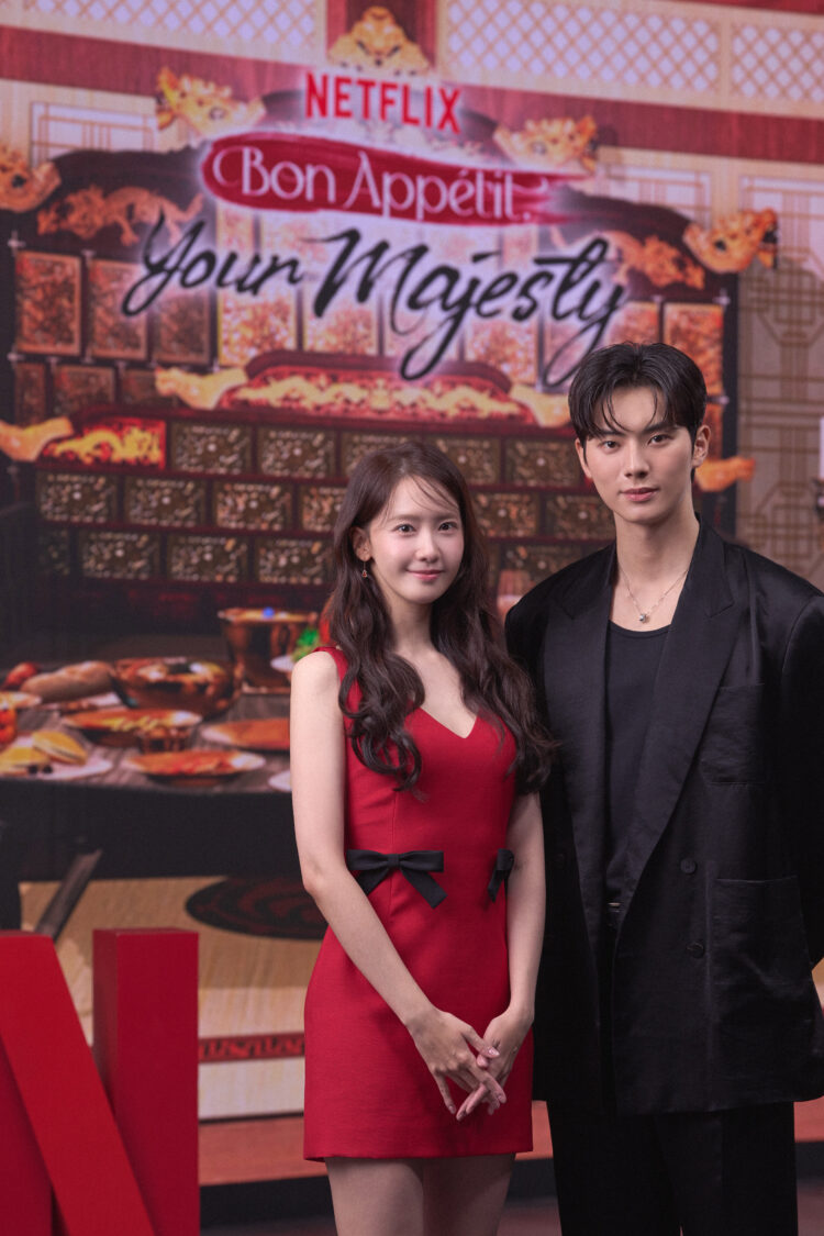 潤娥身穿酒紅洋裝、李彩玟以亮面黑西裝現身,與影集主色調相互呼應。談起彼此角色,李彩玟形容潤娥飾演的延志永主廚「對料理投入100%的熱愛」,前一秒還在現代廚房,下一秒就穿越進入古代王宮的灶火之中;潤娥則稱李彩玟詮釋的燕熙君是「冷酷的暴君」,卻擁有超越常人的味蕾,對料理「無法容忍失敗」。她強調,兩人關係會隨著一道道料理的誕生逐步升溫,醞釀出微妙情愫。