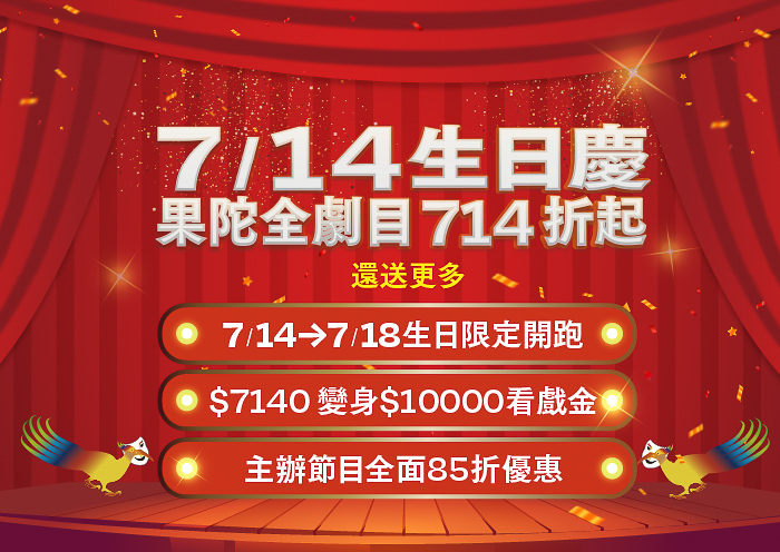 從1988到2025你走進劇場多少次,我們就演出多少次的感動。果陀劇場深耕華文表演藝術領域,37年來歷經風雨,始終堅守創作初心,至今已累積近百部戲劇作品,無論是自製原創或精緻改編,其豐沛的創作能量與對劇場的熱情,將持續帶來動人的故事,而觀眾的眼淚與掌聲,則是我們創作的養分與推動前行的力量。為了回饋喜愛劇場的觀眾,昨(7/14) 日37歲生日之際,首先推出果陀全劇目獨家限量37組 「714折看戲金抵用券」,只要 $7,140元就能變身價值 $10,000元看戲金(10張面額$1,000元紙本抵用券,活動詳情請洽果陀劇場官網或FB、IG),回饋給每一位曾為果陀鼓掌的你,一起重新感受戲劇的溫度與力量。