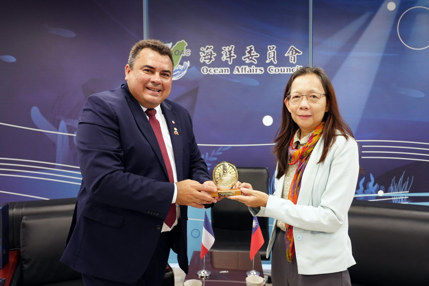 此外,我方提到海洋保育法方於七月份正式施行,希望透過海洋保護區各項作為加強對海洋保護的力道,也讚佩法玻於近期最新公告,面積多達450萬平方公里的Tainui Atea保護區,成為全球最大的海洋保護區,使得該國海洋保護區達到87%,期待未來能有更多面向的交流合作。