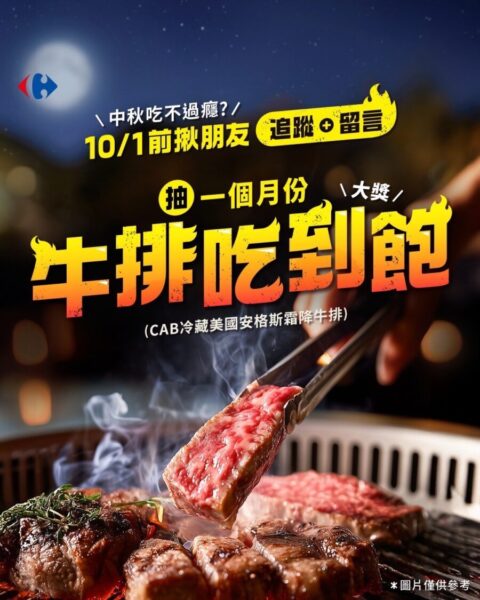 活動期間追蹤@carrefourtaiwan 成為樂樂粉,標記兩位想一起去家樂福的朋友,並留言想吃的中秋烤肉食材,有機會獲得:
