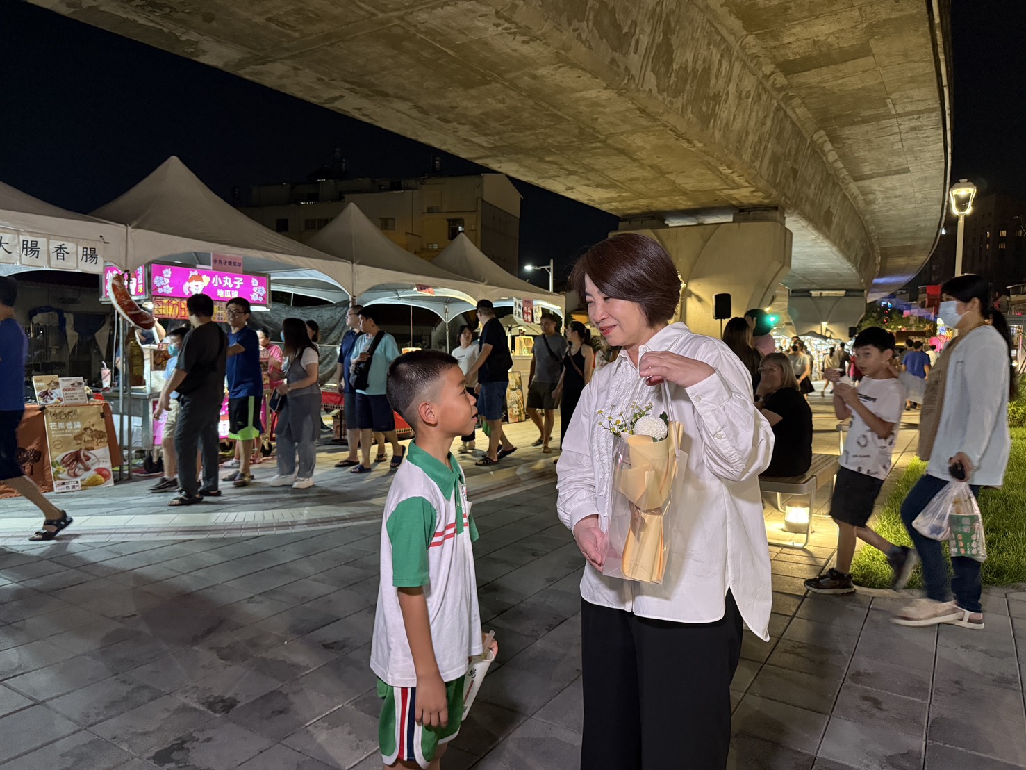 【今傳媒/記者李祖東報導】迎接中秋節連續假期,「屏‧花漾市集」自10月3日至5日一連三天在屏東市萬倉街旁臺鐵橋下廊道盛大展開,以花卉與甜點為主題,集結超過100攤特色攤位,吸引大小朋友參加,現場人潮滿滿,熱鬧非凡。縣長周春米今(3)日也到場共襄盛舉,邀請民眾利用週末假期到萬倉街散步、逛市集,感受屏東夜晚的新風貌。