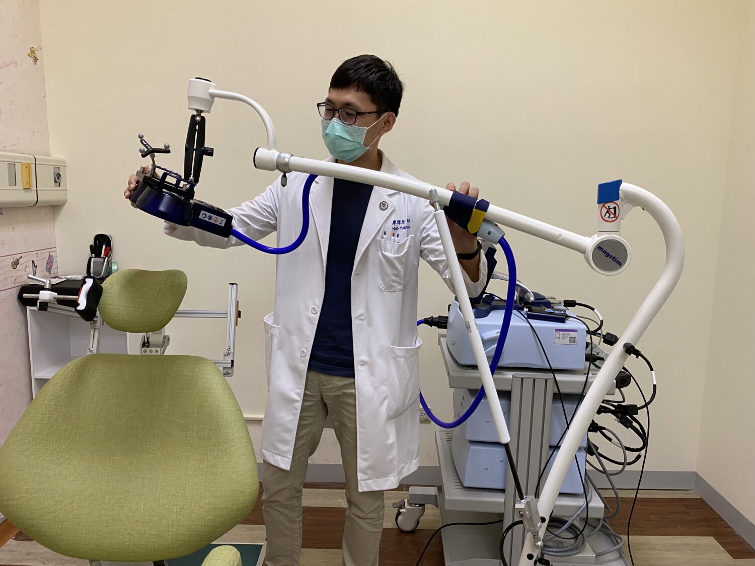 廖揮原醫師提醒,進行 rTMS 前須經由專業醫師評估是否合適,不建議用於具癲癇病史、頭部有金屬植入物、或懷孕者。治療過程中可能出現輕微的頭痛或頭皮不適,屬短暫性副作用;極少數患者可能出現癲癇發作,需特別注意。rTMS 治療通常需連續多次療程,效果依個人體質與病況而異,並非立即見效。治療期間需配戴耳塞以減少噪音干擾,並應持續觀察個案的情緒與心理變化,以確保整體療程安全有效。