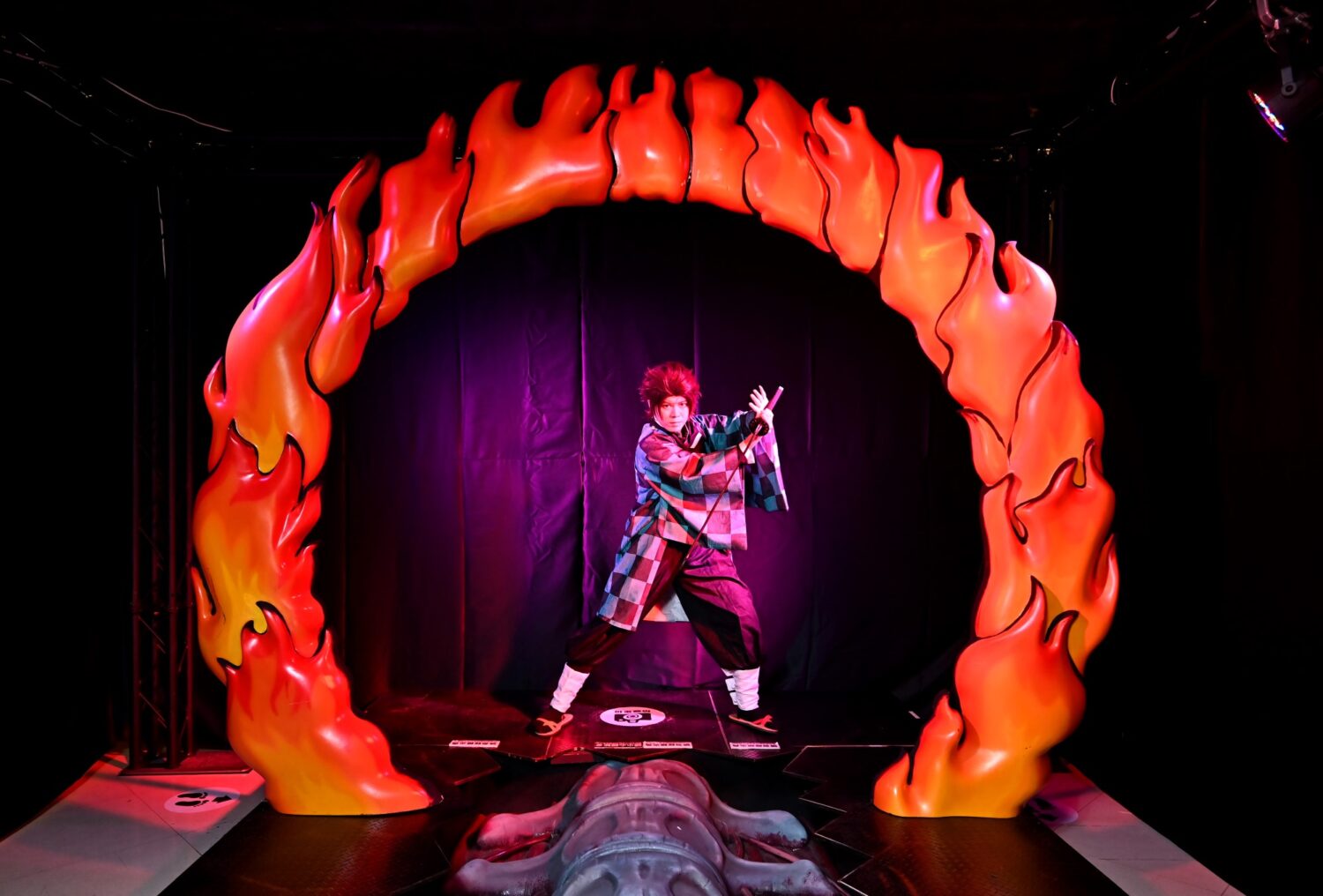 展區集結《竈門炭治郎立志篇》、《無限列車篇》、《遊郭篇》、《刀匠村篇》及《柱訓練篇》各季TV動畫的動人台詞與精采畫面,鬼殺隊最高戰力九柱的等身立牌,無限列車篇中炭治郎使出「火之神神樂 碧羅之天」斬向魘夢脊骨的經典戰鬥場景,邁向無限城展區中鏡面交錯的反射身影,以及無慘、黑死牟、童磨、猗窩座、鳴女齊聚,以無限城進行設計的商售區,絕對都是攻佔粉絲手機記憶體的必拍畫面。