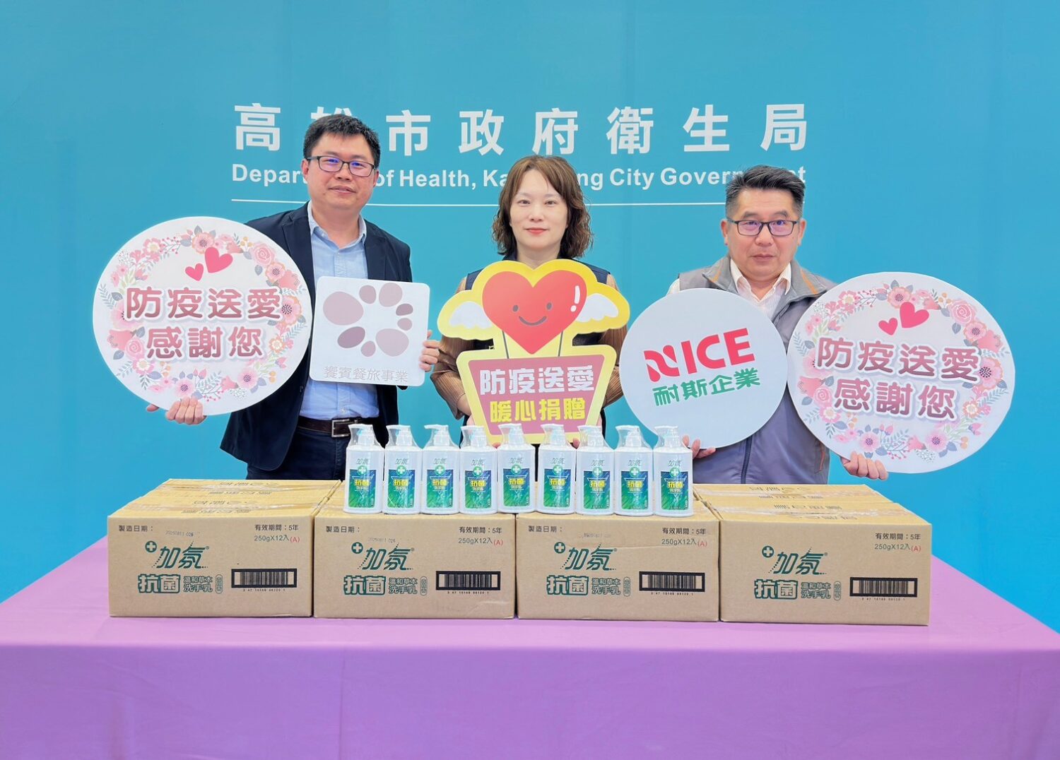 此外衛生局也特別感謝饗賓餐旅事業股份有限公司及耐斯企業股份有限公司,熱心公益配合政府防疫,捐贈洗手乳以協助宣導手部衛生觀念,共同防範流感、COVID-19、腸病毒等其他常見傳染病。