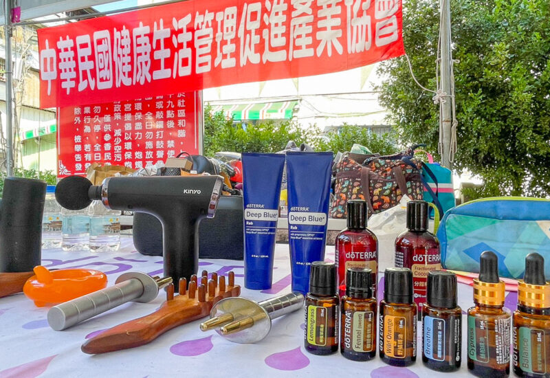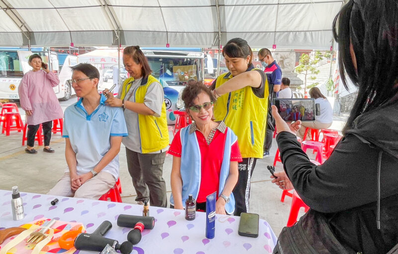引入注意的是,攤位中,除了有免費頭髮義剪之外,居然還有一群穿著黃色背心的志工,手持筋膜槍、按摩棒,以精心調製的精油,暖心地為捐血民眾按摩肩頸,幫忙快速恢復!