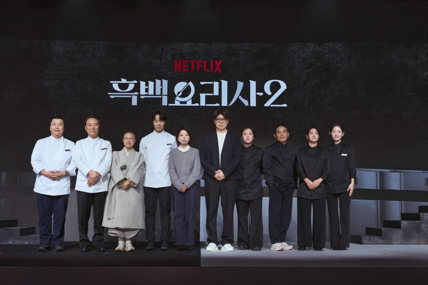 【今傳媒/記者陳昱均報導】去年備受矚目的Netflix無腳本料理實境節目《黑白大廚:料理階級大戰》第2季,日前於韓國首爾舉辦記者會,導演金學慜、金銀芝攜手多位「白湯匙」與「黑湯匙」主廚代表現身;相較首季以技巧與淘汰節奏吸引目光,第2季在賽制、舞台規模與廚師間的情感層次全面升級,讓料理對決不只比高下,更走向信念與人生選擇的正面交鋒。