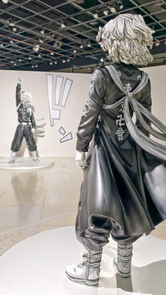 高雄場「Mikey Mart」帶來豐富的特展商品,首推日本展特別推出的金銀版圖錄,金版圖錄收錄高畫質插畫、展覽原畫、X(原Twitter)插圖、漫畫分鏡稿等,而銀版圖錄收錄特展完整記錄照片、角色資料、最終章構想,及和久井老師給粉絲的訊息等,兩本圖錄可說是《東卍》的歷史,粉絲絕對不能錯過。而台灣展更首賣帥氣的壓克力鑰匙圈、T恤、多種設計胸章、不鏽鋼保溫隨行杯、帆布小提袋、壓克力票卡夾、冷燙色紙等等,超過百樣商品任你選擇!於「Mikey Mart」消費滿額千元,還能把以主視覺帥氣角色們設計橫式大紙袋帶回家,沿途對外宣告屬於你的《東卍》魂!