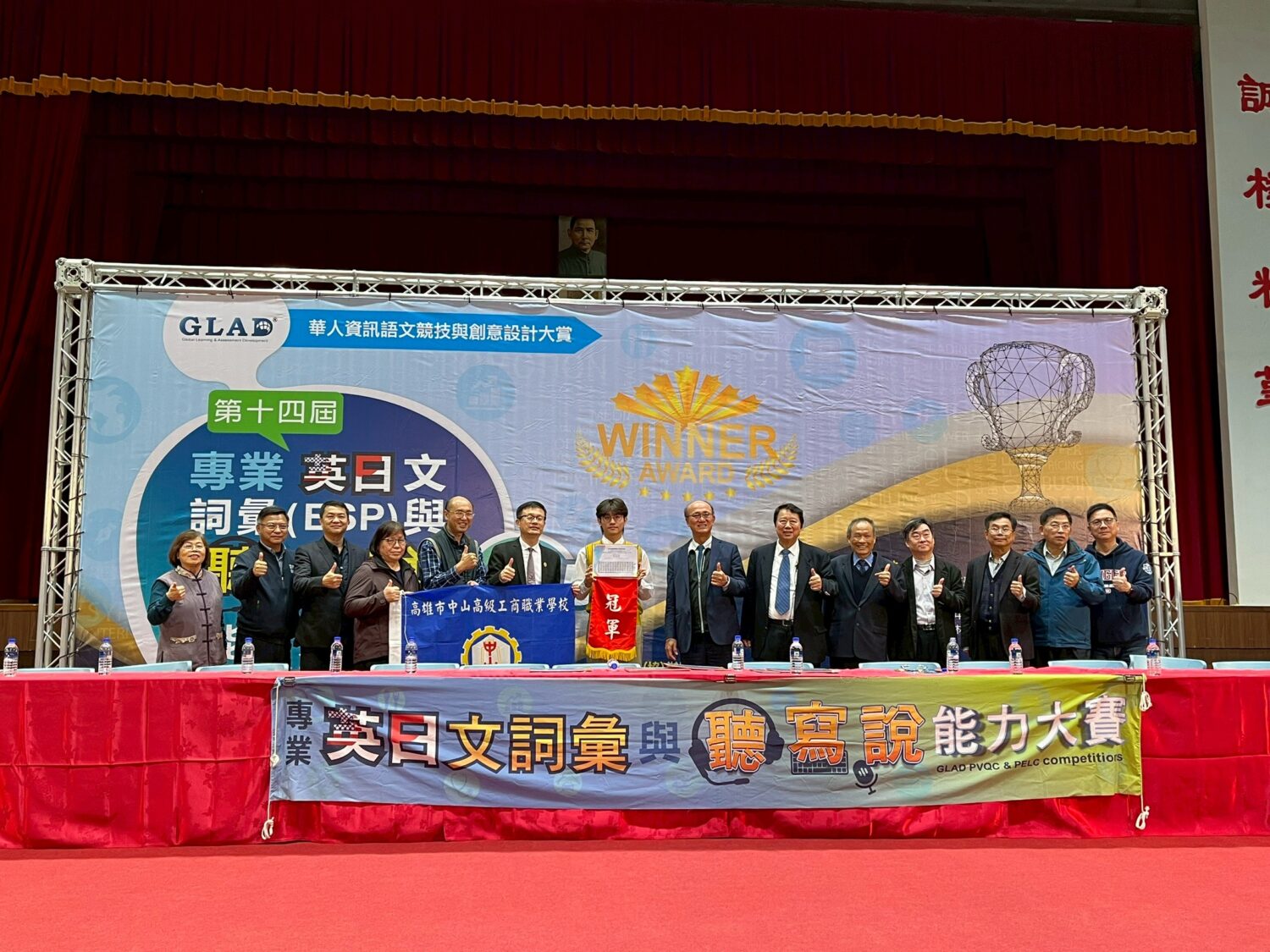 中山工商參加第十四屆「專業英日文(ESP)詞彙與聽寫說能力全國總決賽」,十九位選手勇奪七冠軍、六亞軍、三季軍與金腦獎,其中八位還獲得滿分,不僅稱霸賽場也再次寫下校史新高。