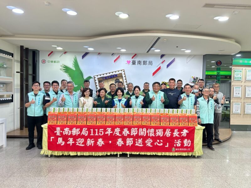 【今傳媒/記者張淑慧 報導】農曆馬年即將來臨,府城街頭處處洋溢著濃厚的年節氛圍,為使社會角落的弱勢族群也能感受溫馨佳節,臺南郵局於2月3日在成功路郵局營收股正式發起「馬年迎新春,春節送愛心」關懷獨居長者活動,展現郵政服務深耕地方、關懷弱勢的溫暖精神。