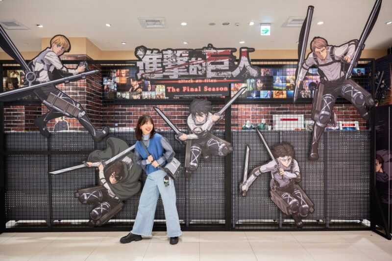 走進快閃店就可以看到英勇犧牲的漢吉、終於幫夥伴報仇的里維兵長和雙手持立體機動裝置刀刃的約翰等五位成員在「天與地之戰」等著粉絲們,往右走來到「最終決戰」,有著六位調查兵團們、顎之巨人、野獸巨人與巨人型態的艾連,讓人立刻想起為了實現「地鳴」而發動的毀滅世界計畫!有看到「米卡莎與阿爾敏」在紅磚牆櫥窗區嗎?好羨慕他們青梅竹馬的深刻感情呀!最後不能錯過的是「經典回顧牆」,艾連即將變身成巨人的那道閃電、獻出心臟的敬禮等一幕幕劇照,一秒陷入回憶的旋渦中!