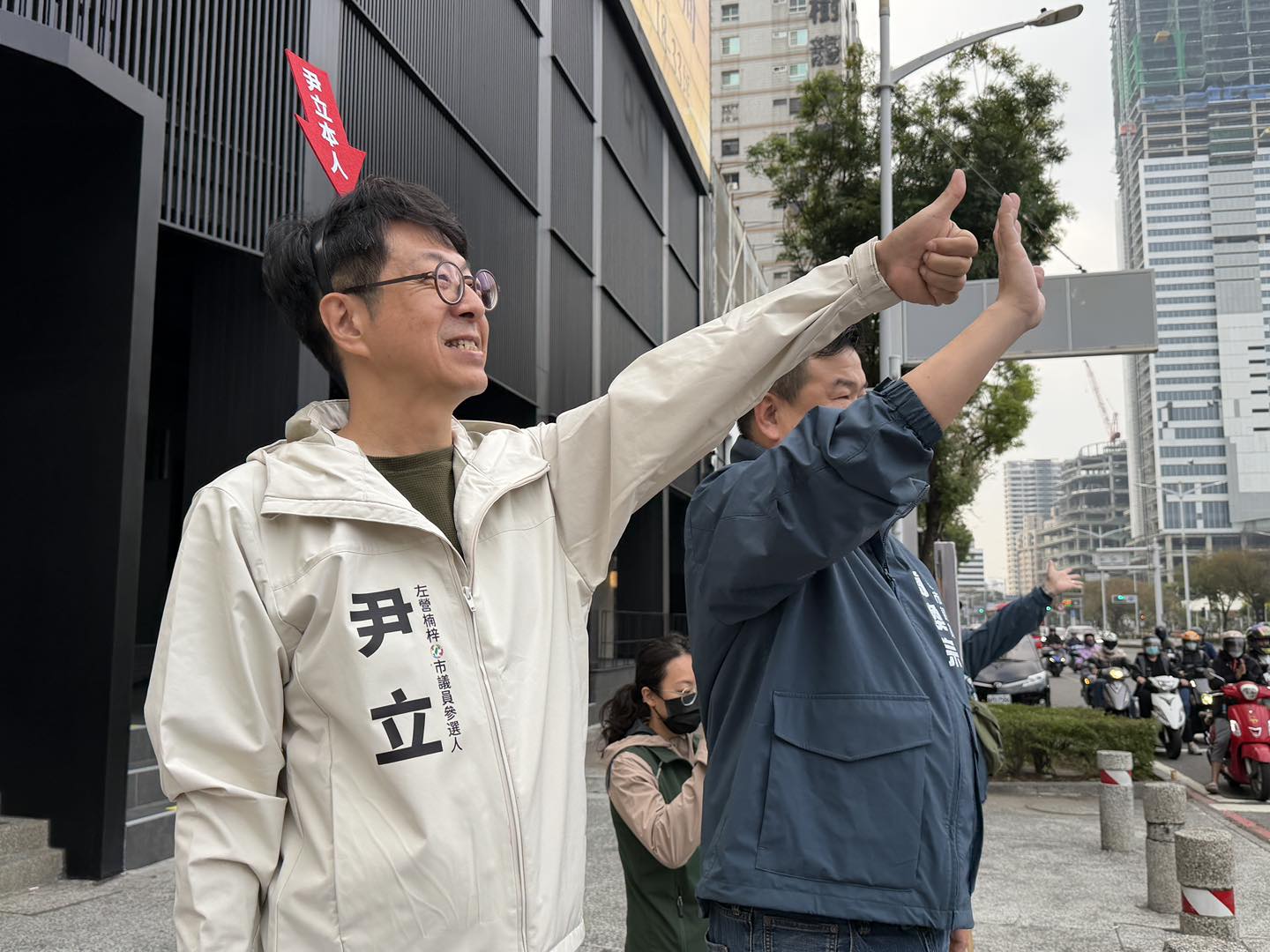 為爭取市民支持,左營、楠梓市議員參選人尹立今(5)日清晨與旗津、鼓山、鹽埕區高雄市議員簡煥宗,一同站上鼓山、左營交界的重要路口,向通勤市民揮手致意、問候早安,以實際行動展現團結合作、拚市政的決心。