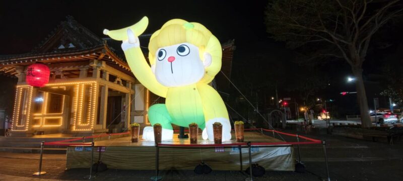 今年於春節前夕,由山城奇幻獸「金蕉枇」領銜主演,配合馬年主題,推出一系列主題佈展,金蕉枇取其台語香蕉串的諧音外,色彩融入香蕉的青黃色系,造型為壯碩身軀卻有著萌趣外型的反差,越看越討喜,這隻食量驚人、一次能吃掉「一枇」香蕉的萌獸,平日最愛躲在旗山的黃金蕉園中,這次牠特別現身武德殿主燈區。主燈「金蕉枇大豐收」巧妙利用武德殿的歷史建築特性,設計出金蕉枇頑皮地想將香蕉丟上屋頂的互動姿態,也寓意著將好運「擲」向新的一年。