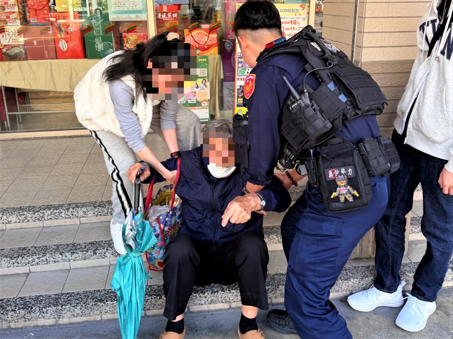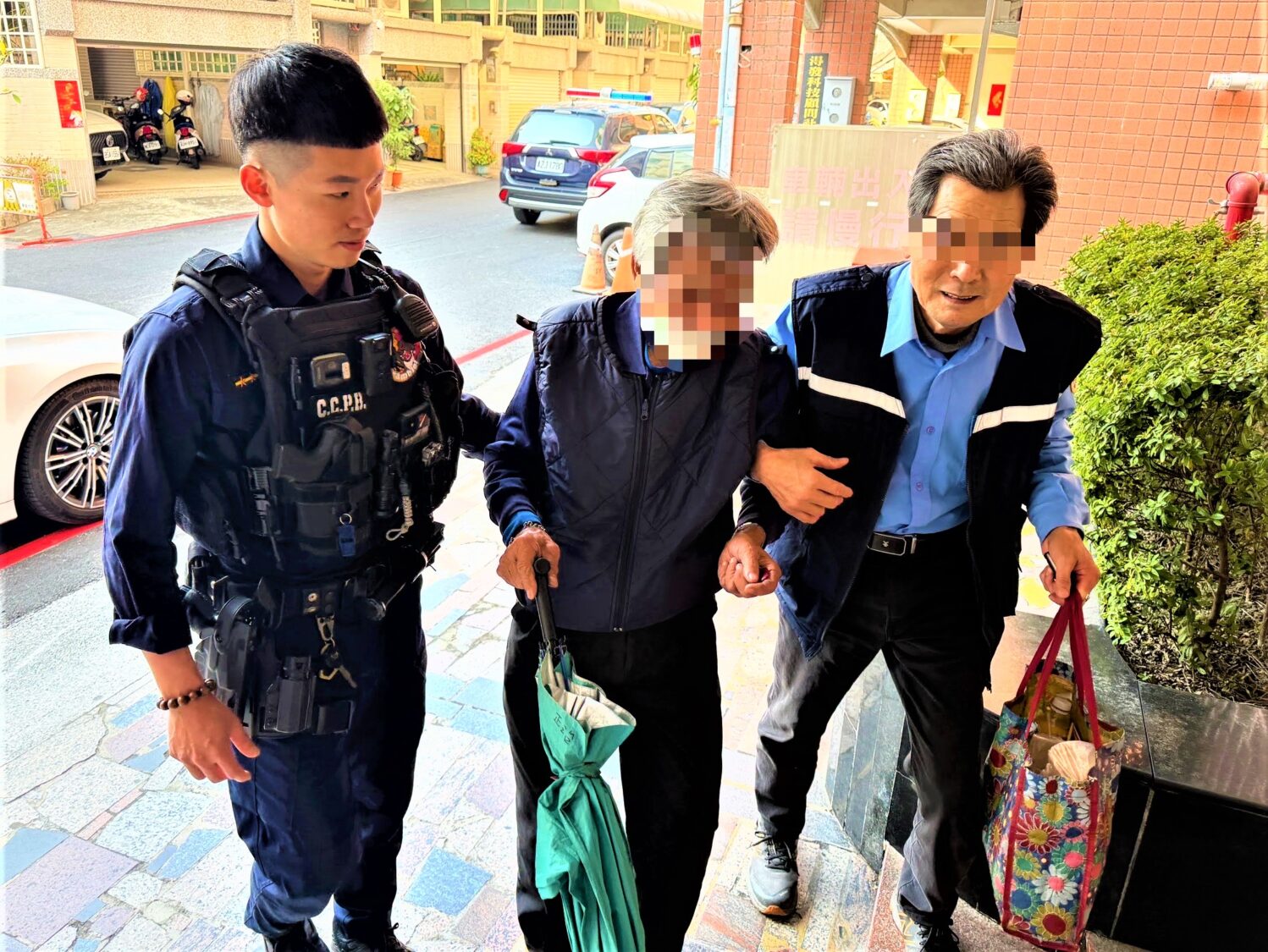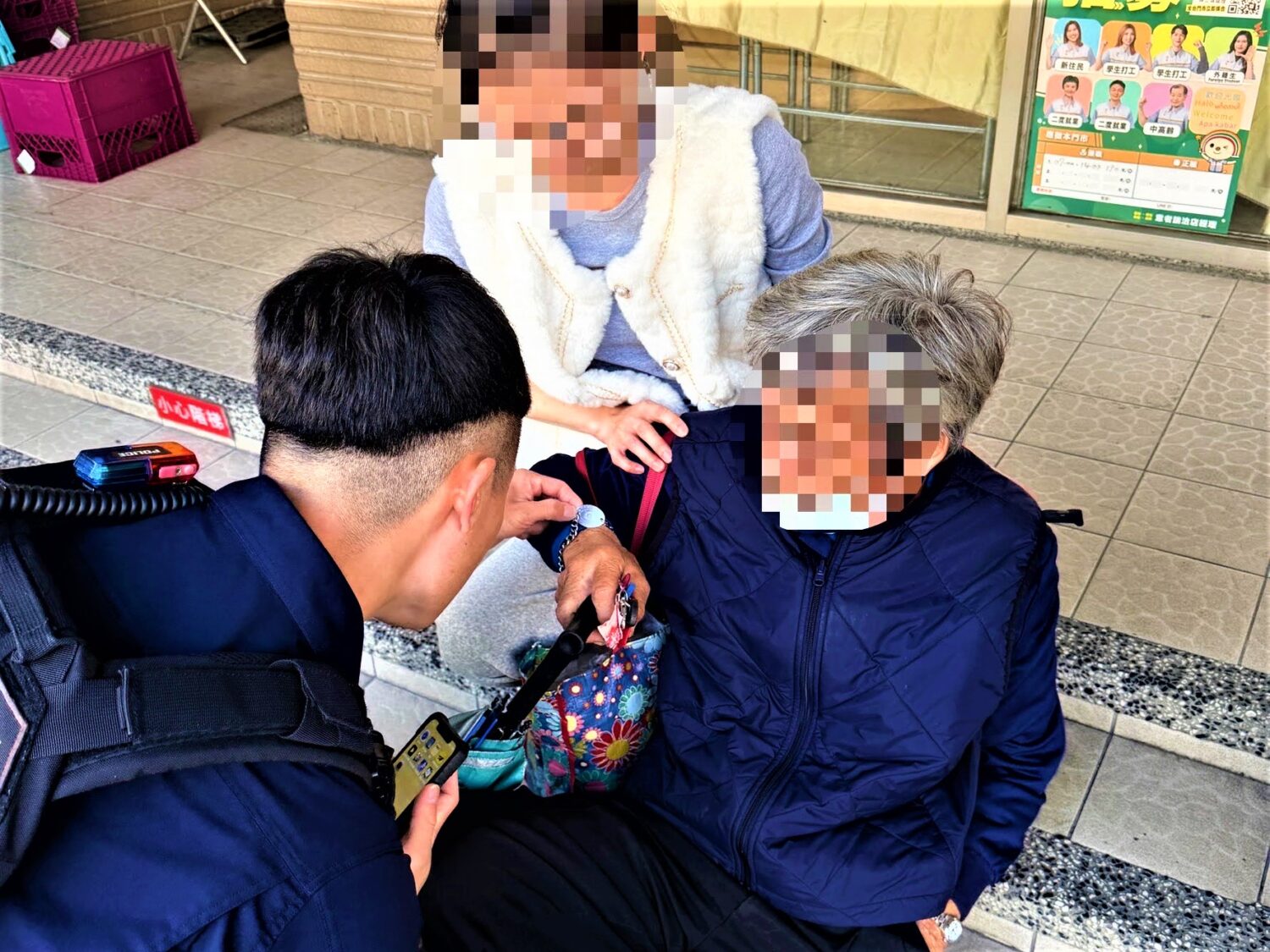 陳姓老翁於早上提著袋子出門購物返家時,緩慢地走到民生南路段某超商前,因年事已高身體呈現疲累腳力不足只能蹲坐在超商騎樓下,熱心路過的民眾發現陳翁狀況擔心身體不適,請警方到場協助;員警在陳翁的手上發現了一條手鍊,有一組電話號碼,再細心查證下終於得知陳翁住家就在不遠處巷弄內,關懷詢問「要不要聯繫家人來載您回家呢?」,陳翁表示目前只有自己獨居在家,也不想聯繫兒女及其他家人們擔心。
