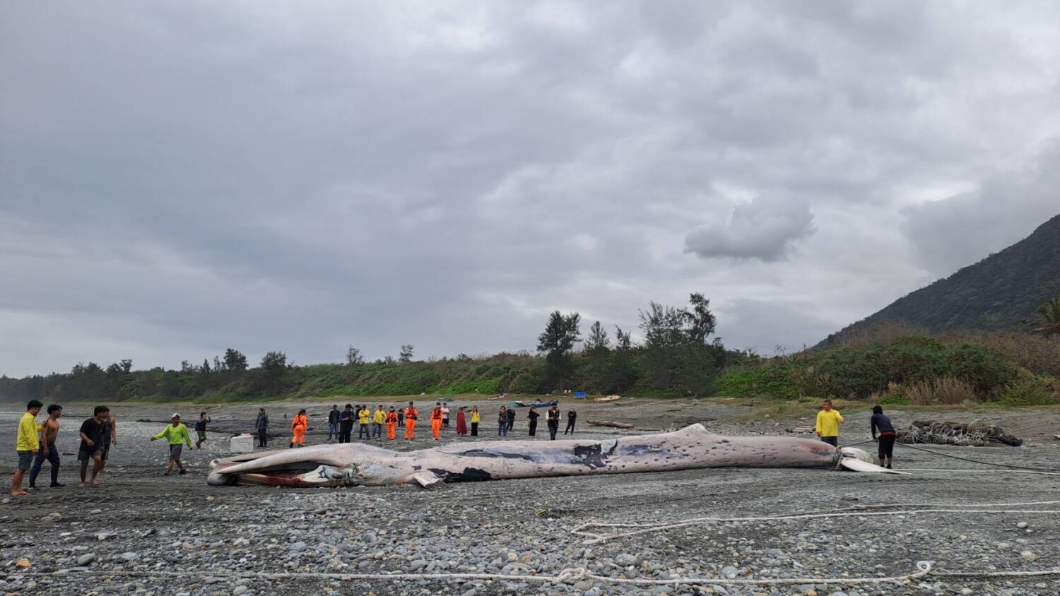 海保署表示,鬚鯨類為鯨目鬚鯨亞目的大型海洋哺乳動物,其上顎具有角質構成的「鯨鬚」,可透過過濾海水攝食磷蝦、小型魚類及浮游生物。部分鬚鯨種類體長可達20公尺以上,是海洋生態系中重要的大型濾食性物種。由於臺灣周邊海域鬚鯨相關紀錄仍相對有限,每一次擱淺或發現個體皆具有重要的科學研究價值。