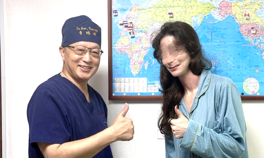 當天手術順利結束後,曹醫師拿出診所早已備好的德國小國旗,請Jessica自己插在國際白疤中心研究室內,世界地圖上的柏林位置時,令她感到驕傲及欣喜。期盼手術成功後能讓她重展信心與歡顏,重拾生命的春天。