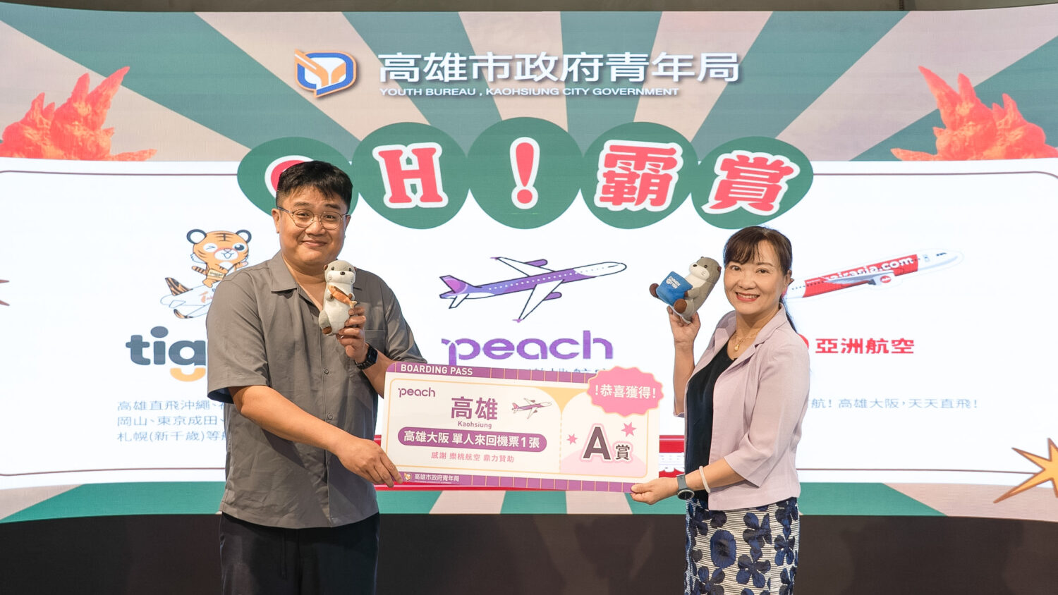 除「特攝微縮城市」持續吸引人潮外,由台灣虎航、樂桃航空及AirAsia亞洲航空提供「高雄-日本」來回機票的「OH!霸賞」線上加碼抽,幸運得主近日也陸續至青年局領獎。得主王小姐表示,情人節當天前往青創店家消費慶祝生日,沒想到就抽中最棒的生日禮物!另一位得主賴先生則表示,在冬日遊樂園周邊青創市集購買商品,僅小額消費就抽到機票,開心直呼「太超值!」