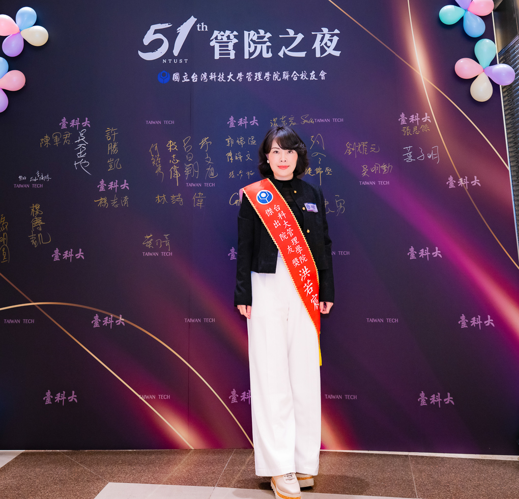 根據統計,自2004年至2026年間,國立臺灣科技大學管理學院共遴選出123位院級傑出校友,其中女性僅7位,比例不到5%。而院級傑出校友須自各系傑出校友中再經院務會議遴選產生,同年度同時獲得系級與院級肯定者更屬少數。在高度競爭的專業領域中,這不只是學術榮譽,更代表其在產業中的長期影響力與領導高度。洪若宸自承億集團基層入職,歷經飯店籌備、館長、營運主管、品牌拓展到五星級飯店總經理,一路走過台灣設計旅店產業成長的關鍵階段。她所帶領的,不僅是企業營運的提升,更是品牌定位的改寫。