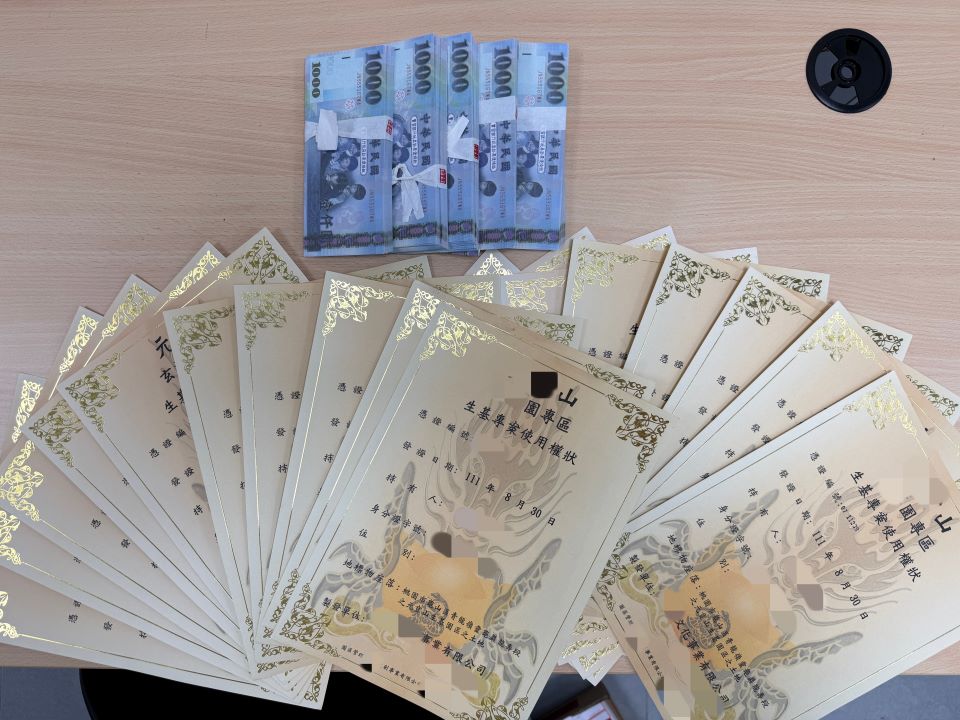 18日15時30分許,28歲林姓男車手如約而至,在車上當面向被害人取走警方準備的餌鈔新臺幣50萬後,隨即上車逃逸,警網立即上前攔停,未料林男仍想加速逃逸,員警見狀當機立斷,立即破窗將林男自車內拖出逮捕,並查扣生基塔位權狀20張及手機2支,更進一步查出林男自112年起,不斷反覆從事詐欺犯罪,在北台灣地區流竄,為北檢、北院、新北院及士檢發布之靈骨塔位詐欺案4案通緝,全案警詢後依法偵辦並辦理歸案。