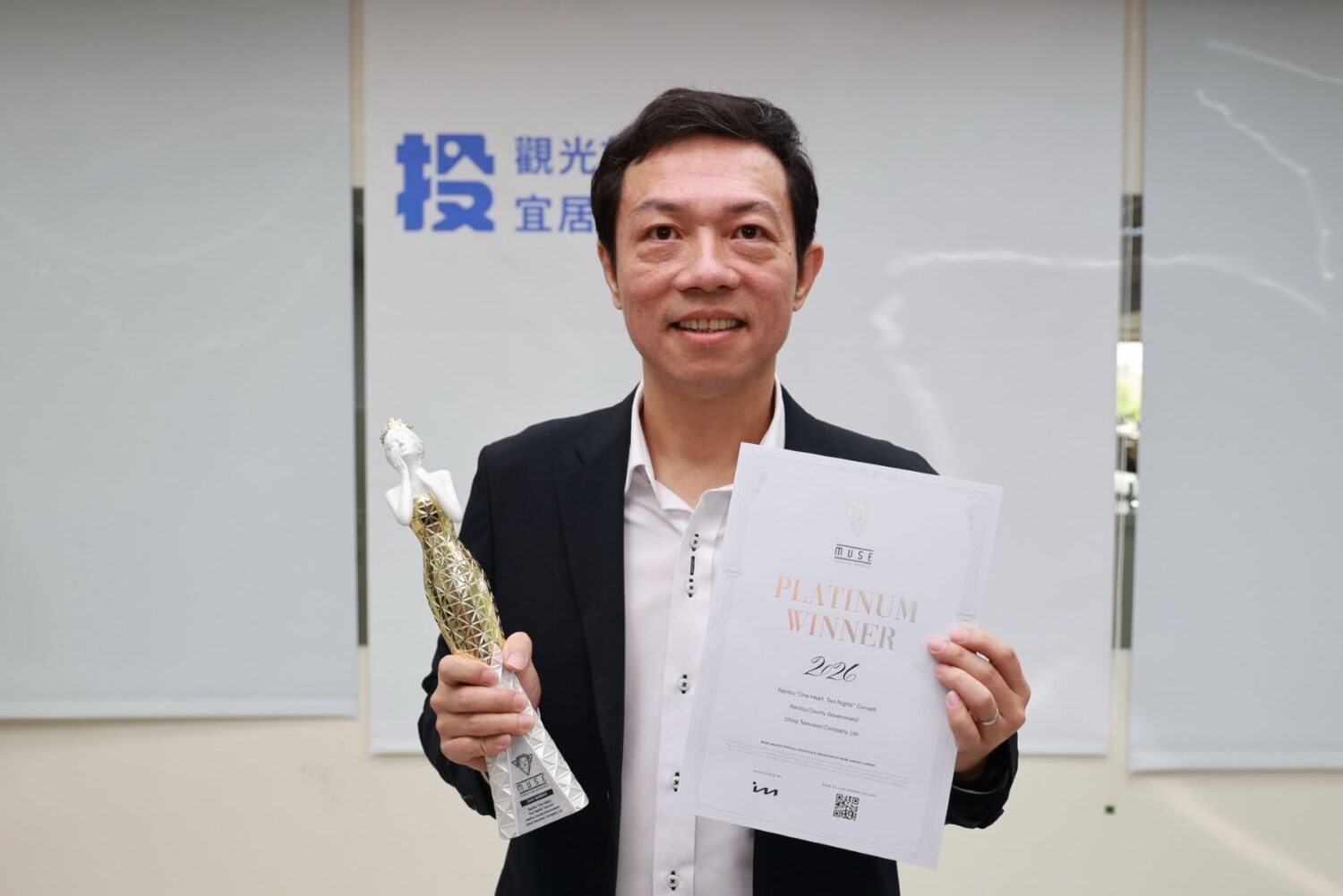 【今傳媒/記者何秀菁報導】南投城市美學與策展實力躍上國際舞台!由南投縣政府新聞及行政處主辦「一心二夜演唱會」結合世界茶葉博覽會在中興新村大操場舉辦,以「經典之夜」與「音浪之夜」兩晚不同風格演出,近日傳回捷報,勇奪 2026 年美國謬思創意大獎(MUSE Creative Awards)「活動類-演唱會」最高等級「白金獎」殊榮。