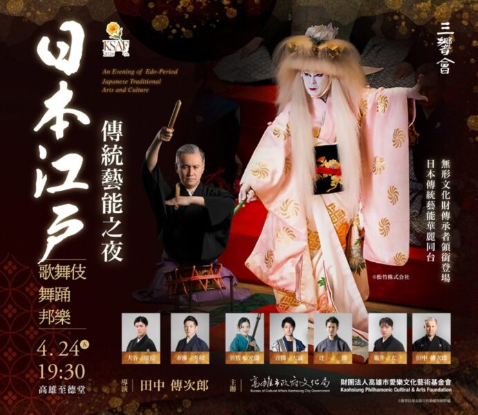 2026年高雄春天藝術節將呈獻年度最受矚目的國際節目-《日本江戶傳統藝能之夜:歌舞伎・舞踊・邦樂》,4/24(五)明天晚上19:30將在高雄文化中心至德堂震撼登場,本場演出是由日本古典藝能音樂代表性的藝能名門-「三響會」成員、同時也是重要無形文化財綜合指定保存者的田中傳次郎親自為高雄春天藝術節策劃、執導並領銜演出。今(4/23)舉行演出前記者會,導演田中傳次郎表示:「過去曾有很多海外的演出經驗,但這是第一次在台灣的演出,希望台灣的觀眾可以細細品味並喜歡這樣的藝能展現。」。