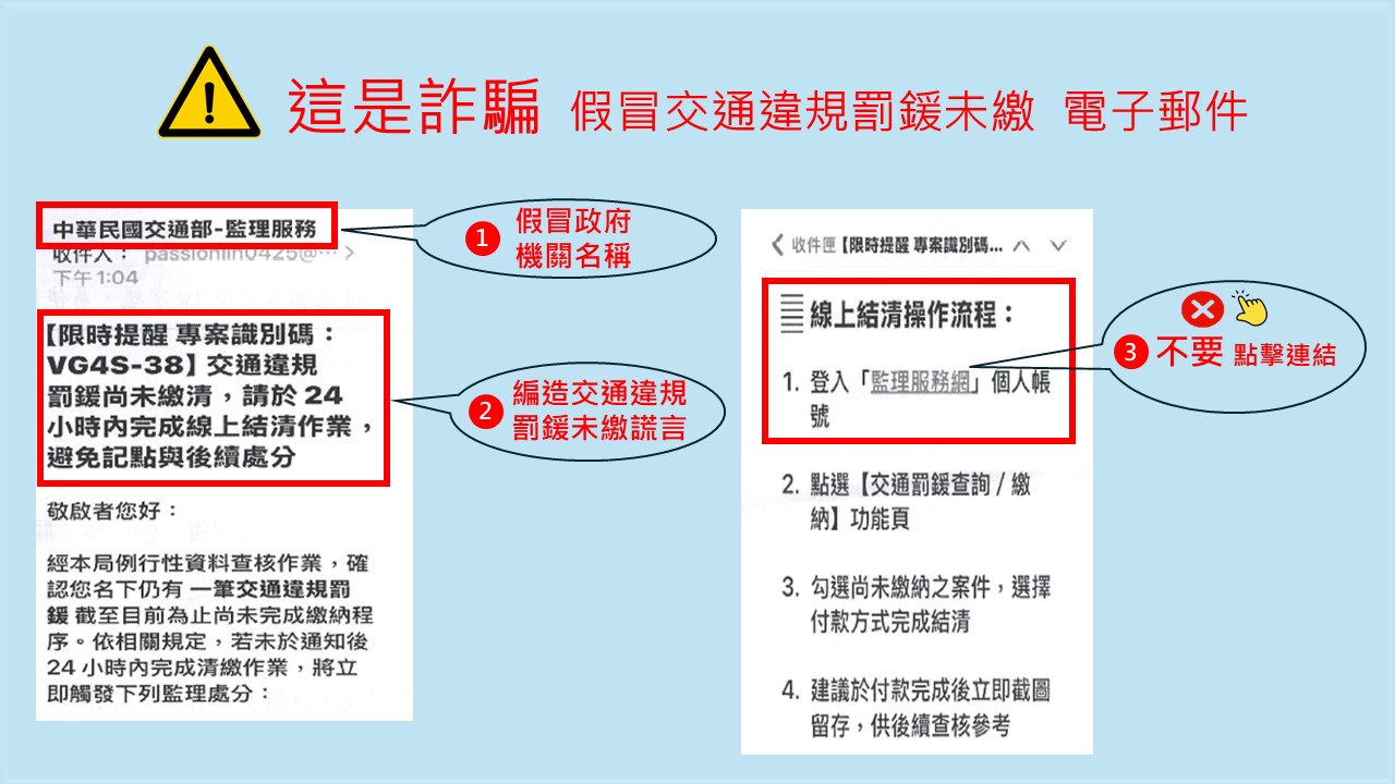 「交通違規未繳」詐騙電子郵件 高雄區監理所呼籲民眾提高警覺
